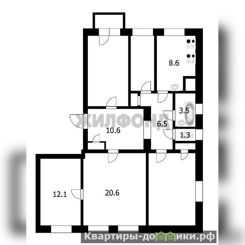 В квартире предусмотрено место для кухни, гостиная, спальня и ванная комната.