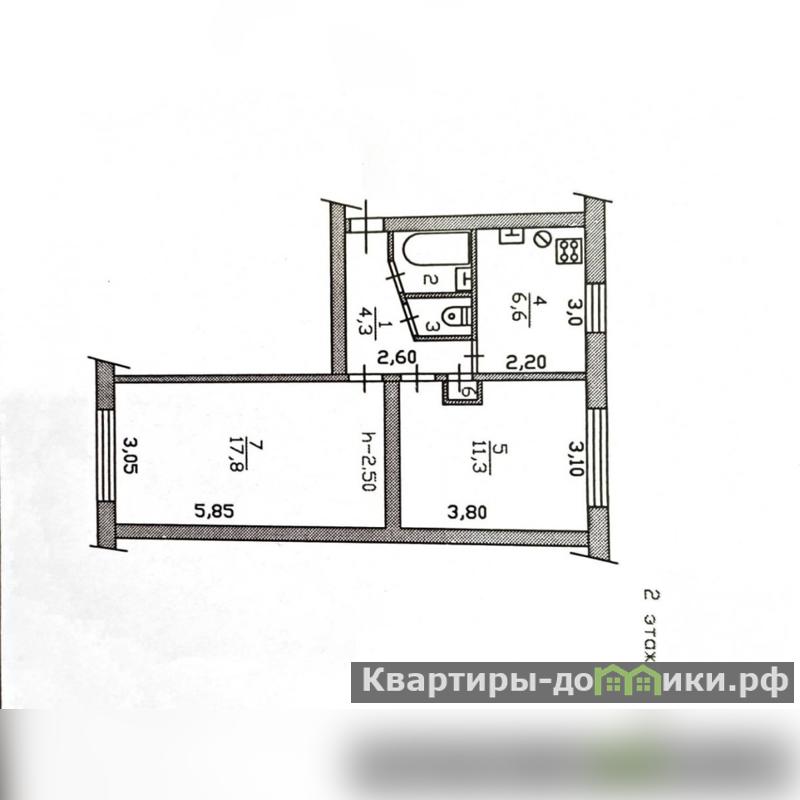 Общая площадь квартиры 43,3 кв.м, кухня 6,6 кв.м, комнаты изолированные 17,8 кв.м и 11,3 кв.м, окна выходят на две стороны дома, санузел раздельный, кладовая.
