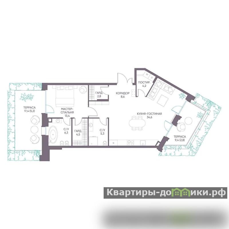 В доме всего 109 квартир: лоты с патио, пентхаусы с панорамными террасами и возможностью установки камина, а также классические элитные квартиры с большими гостиными, мастер-спальнями, приватными ванными и гардеробными, террасами и лоджиями.