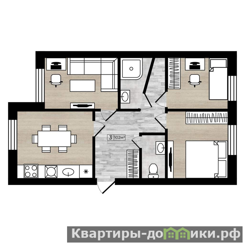 Общая площадь квартиры составляет 101,2 м, включая: