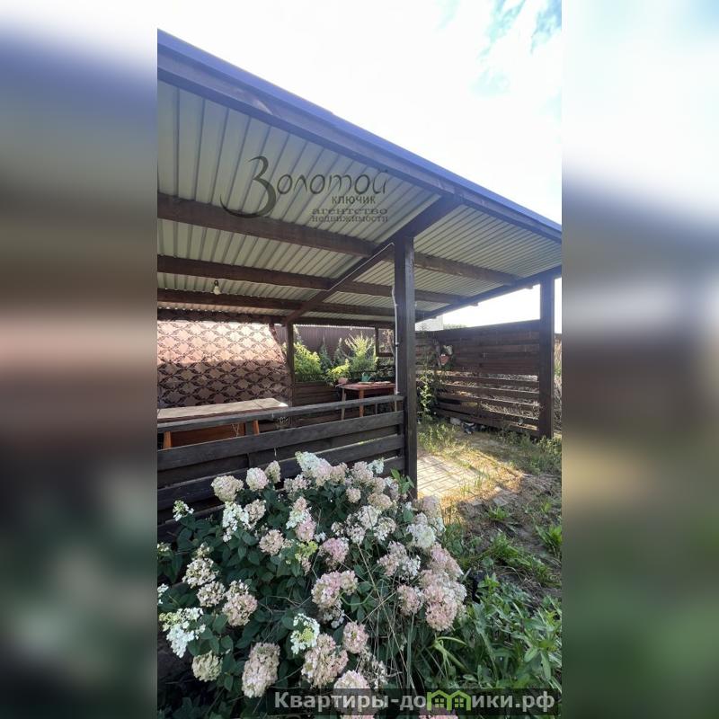 Обжитой, с посадками. Есть беседка, несколько хозблоков и теплица.