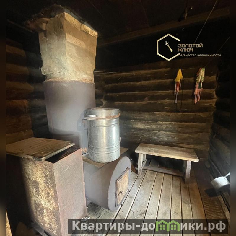 -Крыша-шифер, стены-бревенчатые, фундамент-столбчатый.