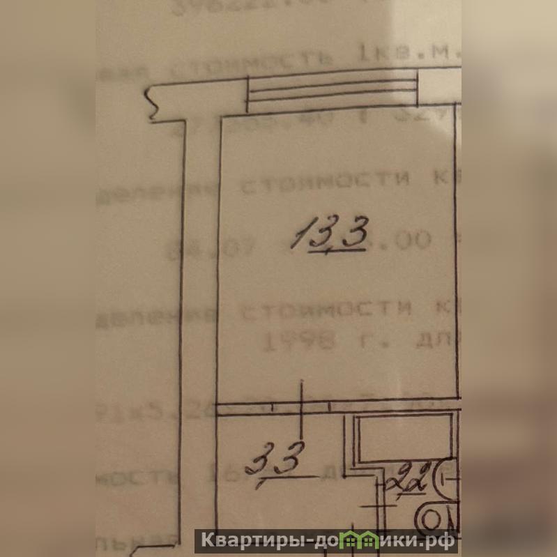 Общая площадь 18.8, комната 13.3. Санузел 2.2м. Большой коридор 3.3м, можно сделать как кухню или снести стену и сделать квартиру-студию.