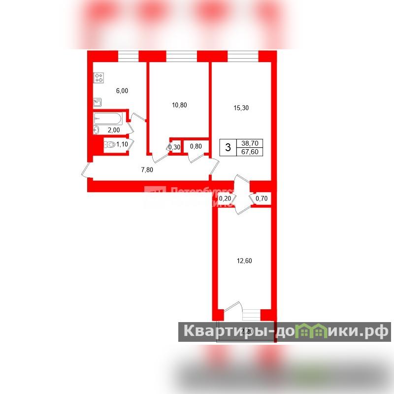 | 10.8 + 15.3 + 12.6 м2 | |