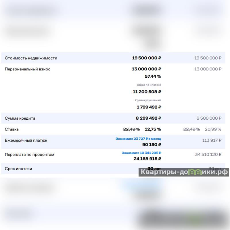 Ставка по ипотеке от 12,75% — значительная экономия на протяжении всего срока кредита.