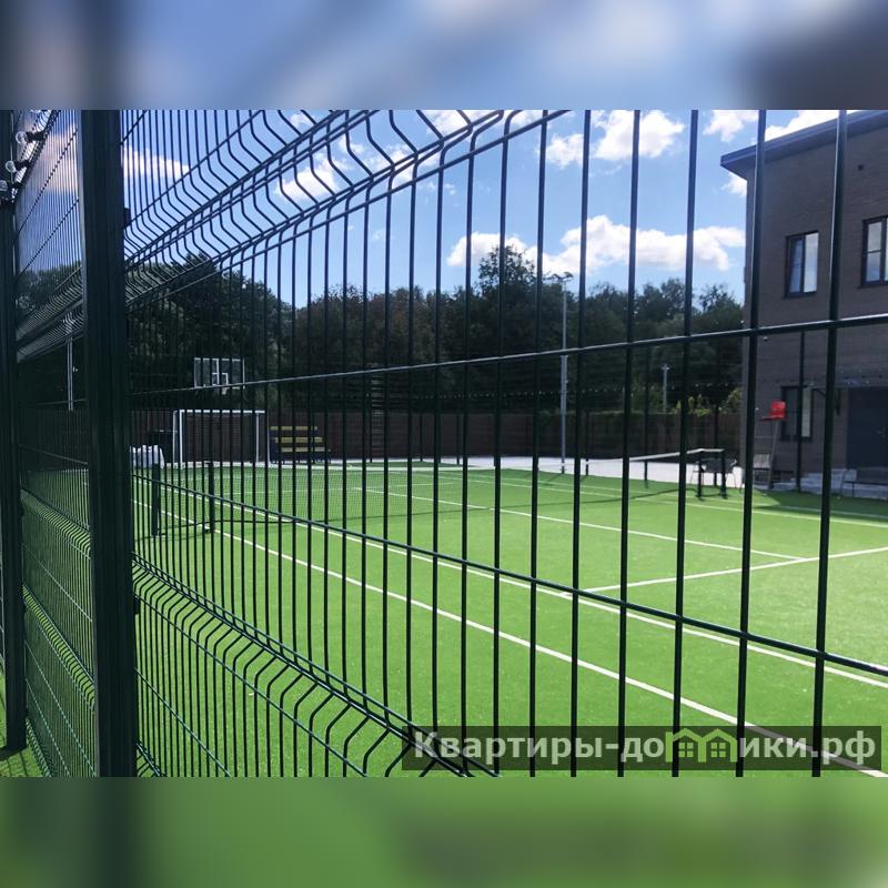 - детская игровая зона, теннисный корт, футбольная площадка, зона отдыха, река (в низине),