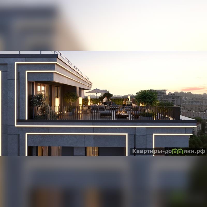 Приватный огороженный двор без машин, с водной гладью и слэбами камней. В доме консьерж-сервис, "умный дом", видеонаблюдение, кладовые и паркинг.