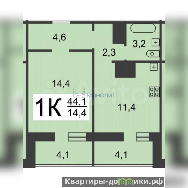 Общая площадь квартиры 44.1 квм