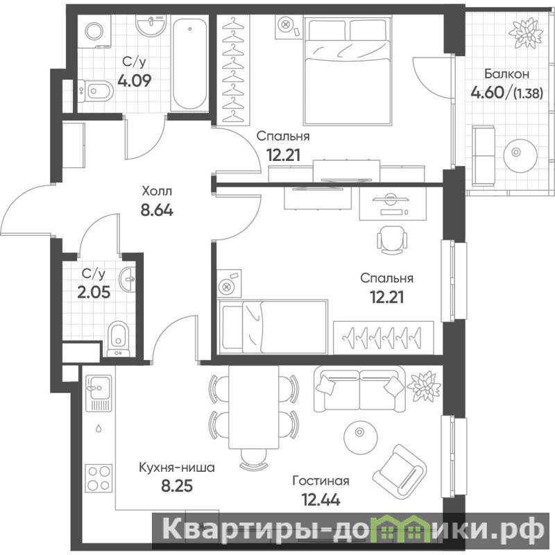 | 12.2 + 12.4 + 12.2 м2 | |