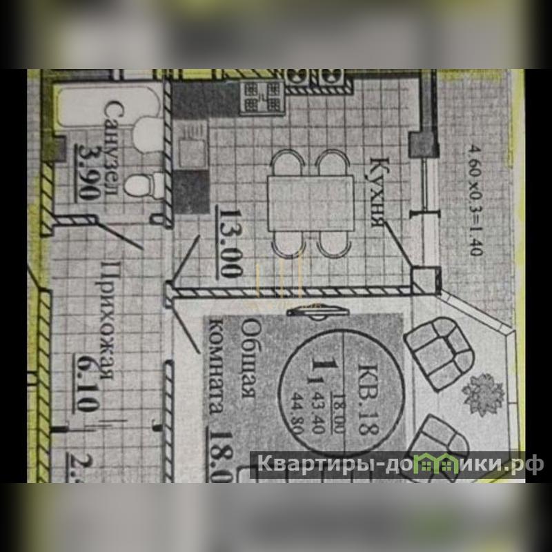 Продаётся Евродвухкломнатная квартира общей площадью 48 кв.м.
