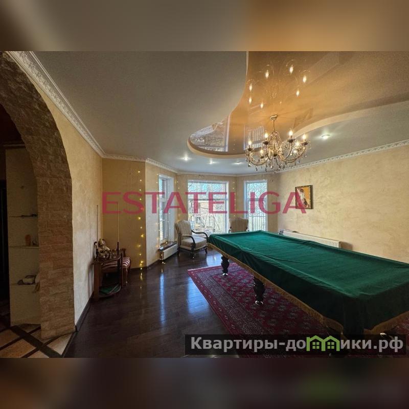 1-ий этаж: Просторная гостиная включает в себя: диваны, бильярдный стол, телевизор и большой кухонный стол на множество персон
