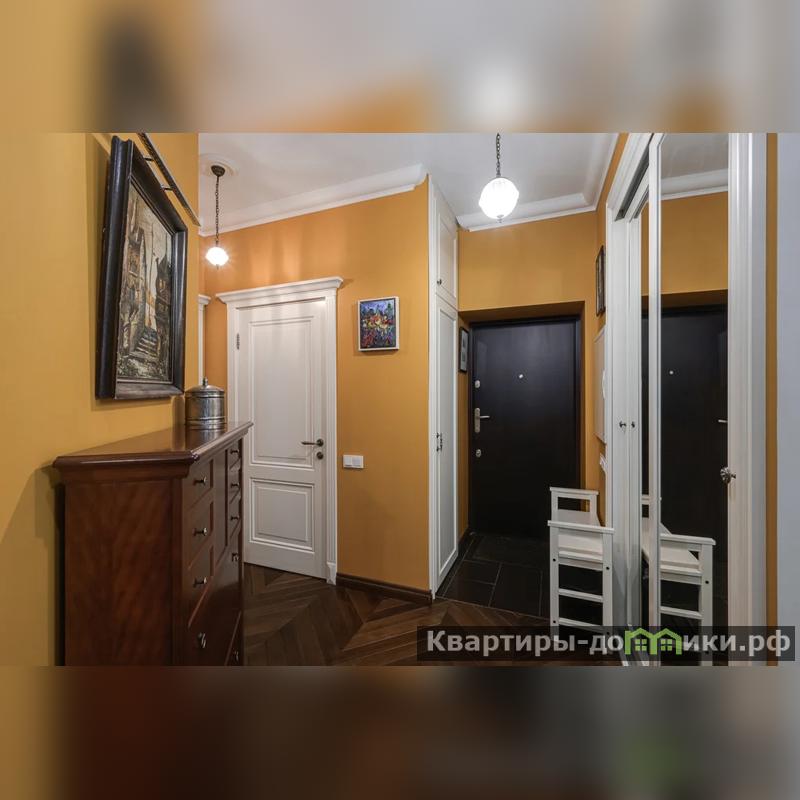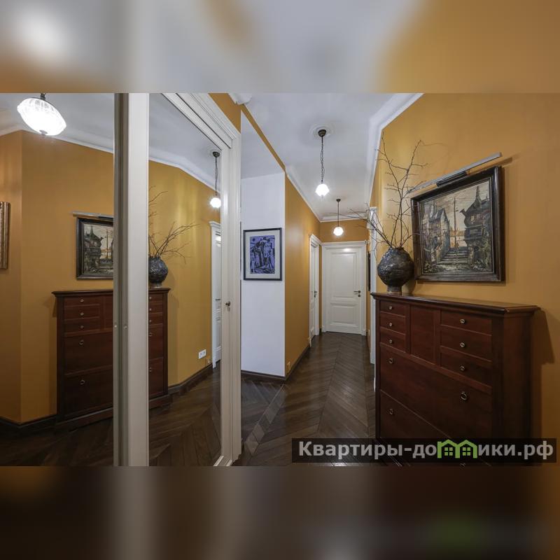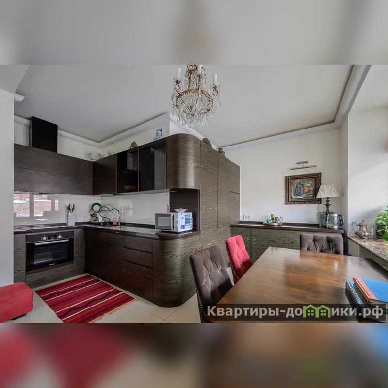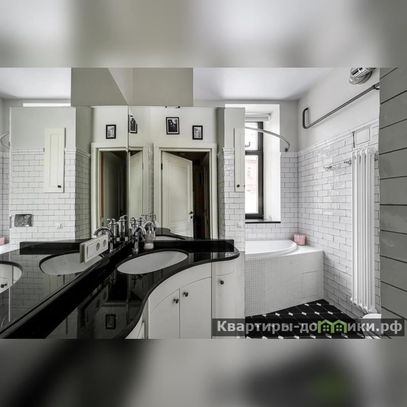 Квартира в приятных светлых тонах, преобладает сдержанная палитра, без резких контрастов. Лёгкий французский интерьер квартиры не перегружен деталями. Светлые стены дают ощущение свободного пространства, а большие окна дают много естественного света. Мебель в классическом стиле. Обтекаемые формы кухонного гарнитура и столешница, выполненная из кварцевого агломерата, шкаф Bjorkkvist из натурального массива для домашней библиотеки и мягкий бархатный диван создают атмосферу уюта и спокойствия в гостиной. Потрясающий вид на Казанскую церковь!!!