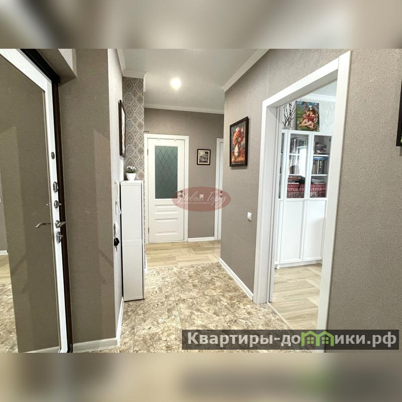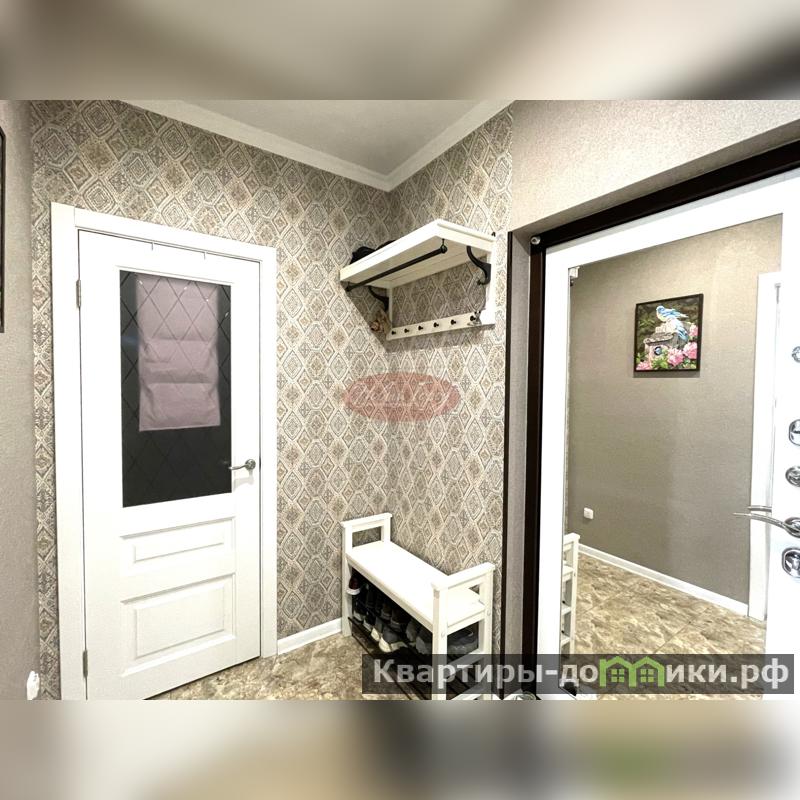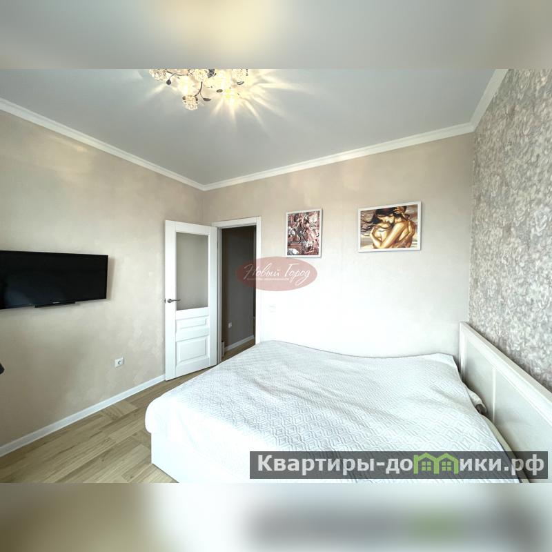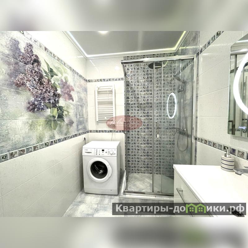 Светлая кухня оборудована встроенной техникой, отдельная спальня и раздельный санузел в кафеле.