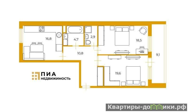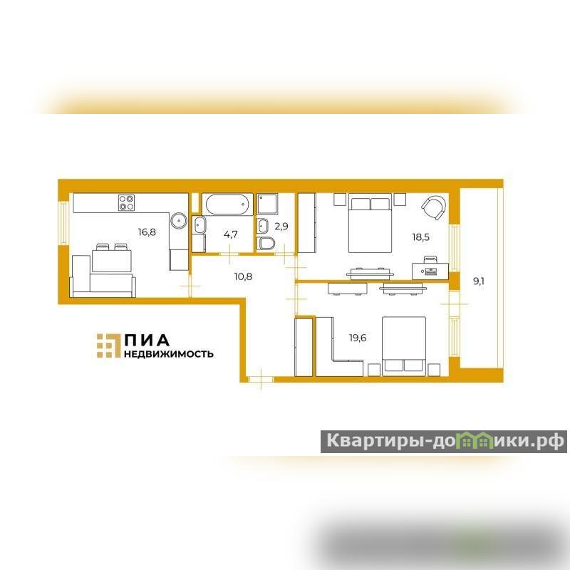 Удачное планировочное решение кухня 16,8кв.м. и просторные комнаты19,6+18,5кв.м. Подойдёт, как для проживания семьи, так и для сдачи, в аренду. Окна выходят на 2 стороны. Мебельбонусом остается новым владельцам. Квартира светлая, теплая и уютная. Ремонт делали качественно для себя.