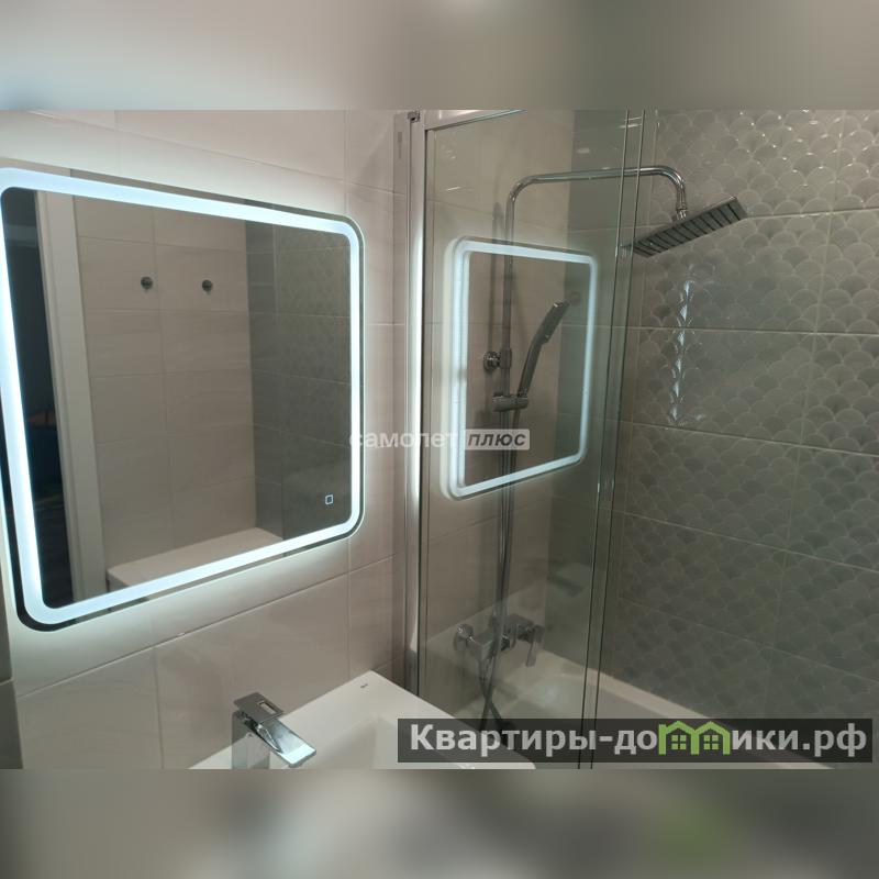 В ванной - также остается все, что на фото: зеркало с подсветкой, стиральная машинка, смесители производства Германии с тем же производителем загородки для душа, нагреватель воды ( на случай отключения горячей), тропический душ.