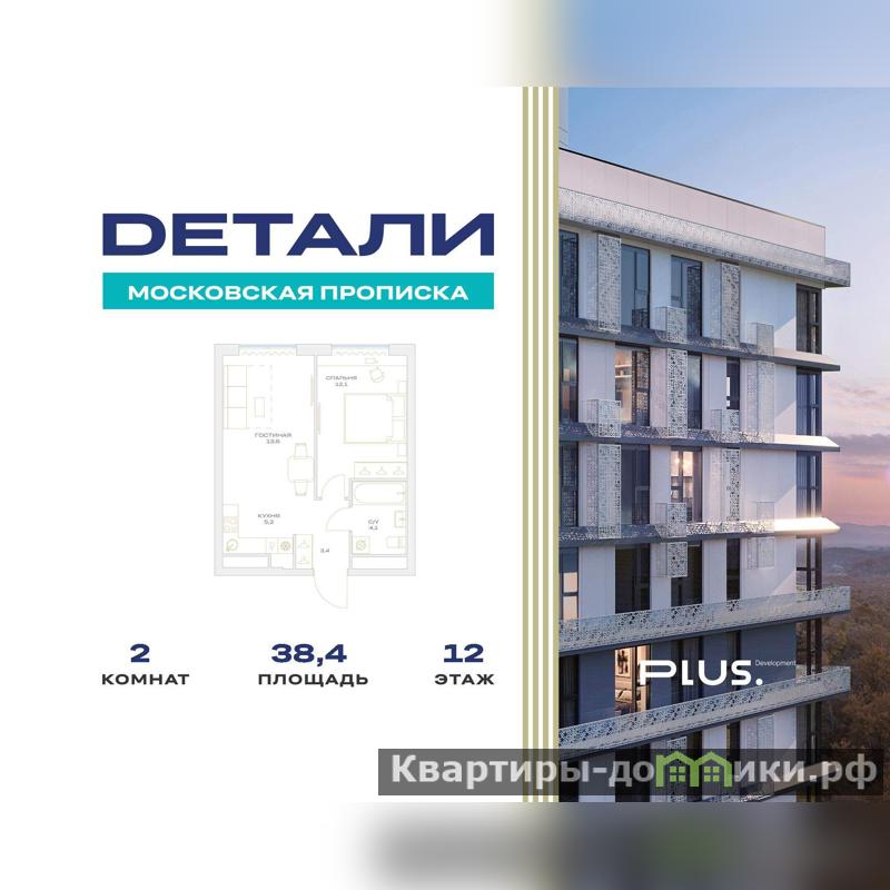 Продается 2-к квартира общей площадью 38.4 кв. метра на 12-м этаже комплекса бизнес-класса Детали.
