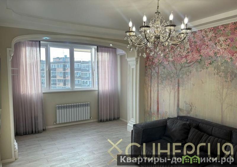 Лоджия остеклена, объединена с гостиной, санузел совмещенный, гардеробная.