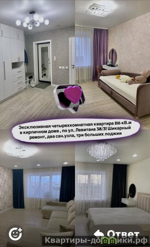 Продается большая,светлая 4-х комнатная квартира на 8/9 этажного кирпичного дома. В квартире сделан качественный,роскошный ремонт, два санузла, есть возможность обустройства сауны,две застекленные лоджии,окна выходят на две стороны. Большая,светлая гостиная, три спальные комнаты. Кухня 12,3 кв.м.большой холл.В квартире остается вся мебель и техника. Инфраструктура прекрасная ,Школа искусств, Фитнес клуб с бассейном 25 метров, Магнит,Пятерочка,КБ, аптеки,школы, остановки общественного транспорта, красивый большой двор с детскими и спортивными площадками. Квартиры с такой большой и функциональной площадью большая редкость! Это не просто квартира-это практически дом! Вживую еще лучше,чем на фото!Номер объекта: #51/655416/20964