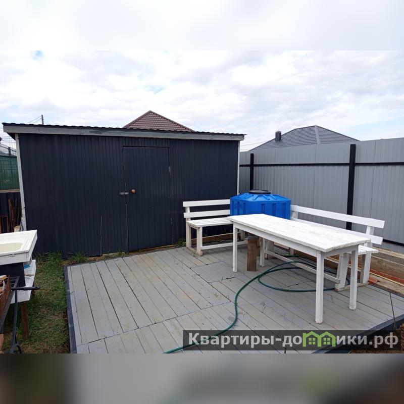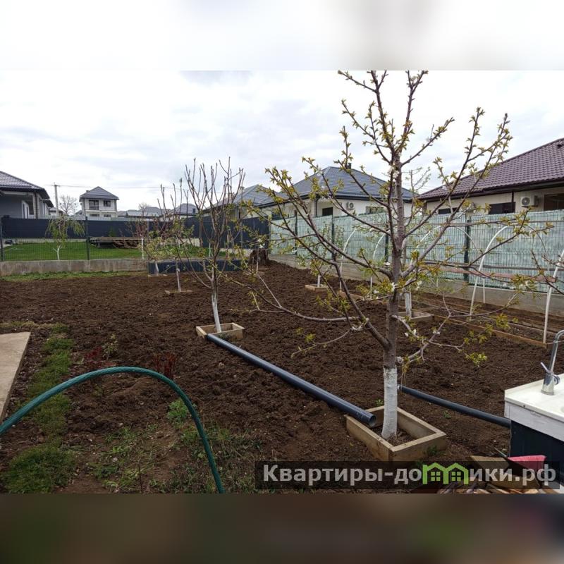 На участке: бетонированная отмостка и место под стоянку автомобиля; бытовка; место под мануальную зону, высажены фруктовые деревья и ягодные кустарники.