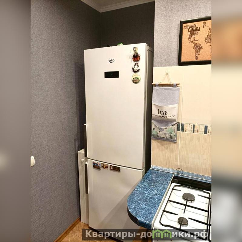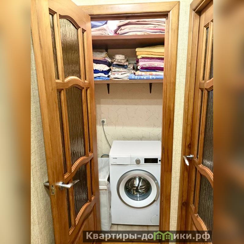 Ванная комната в кафеле. Стиральная машина расположена в отдельном помещении, оборудованном полками. Кухня и шкаф в большой комнате остаются новым хозяевам.Дополнительных вложений не требуется.