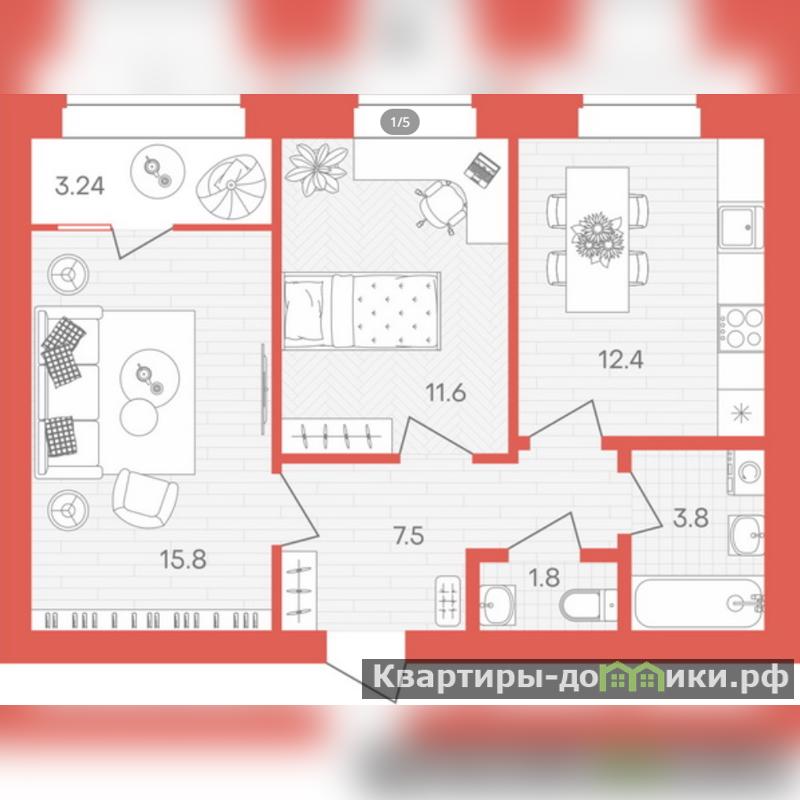 | 15.8 + 11.6 м2 | |