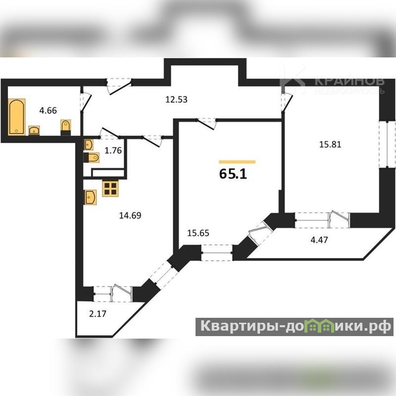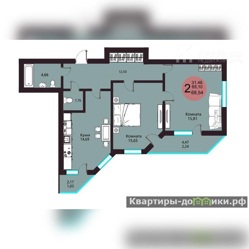Гостиная - 15,81 кв.м, в комнате 2 окна, что делает её ещё более просторной и светлой. Из комнаты выход на вторую лоджию. Эта комната станет отличной зоной отдыха всей семьи, в которой также можно оборудовать и спальное место.