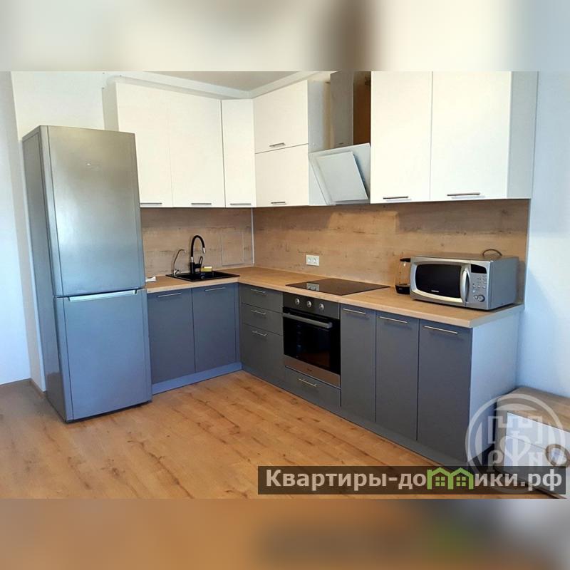 Светлая большая кухня со стильным кухонным гарнитуром, на которой Вы с удовольствием будете собираться всей семьёй и с друзьями. При желании можно сделать кухню-гостиную - размер помещения 14 метров!