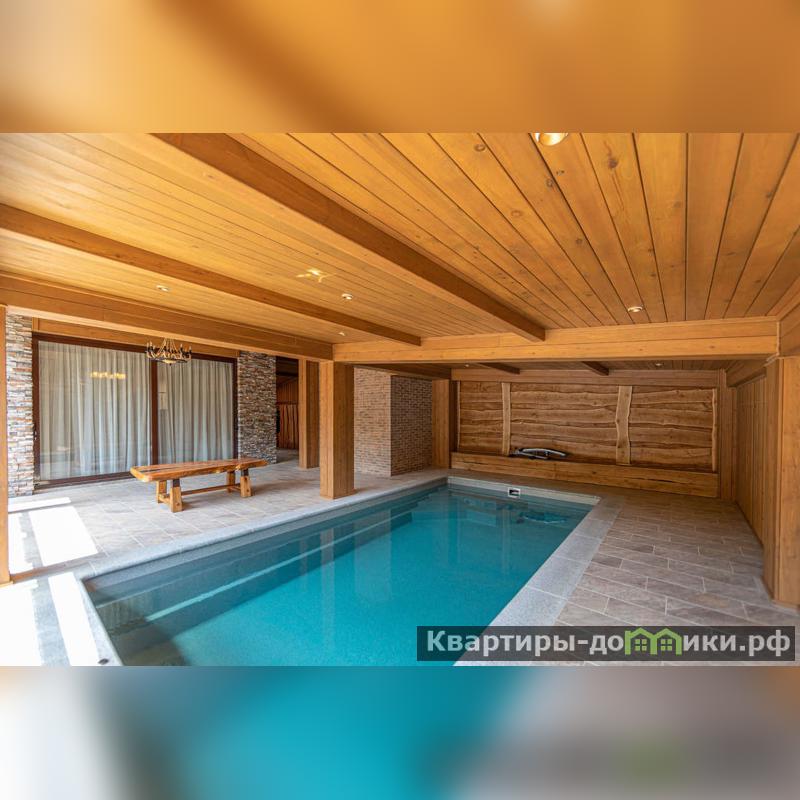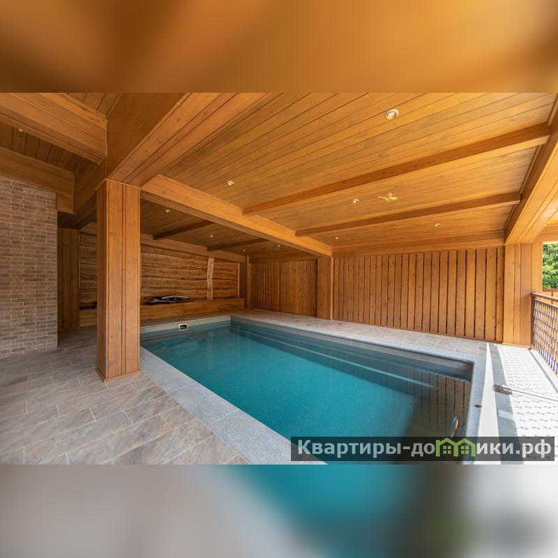 Имеется крытая летняя терраса с бассейном (6,4х3,3 м). Напольное покрытие террасы керамогранит; колонны и ригеля лиственница; потолок-сосна ангарская. На террасе ротанговая мебель, большой обеденный стол (3х1 м), уличный санузел с душевой. На заднем дворе расположена летняя кухня с зоной мангала.