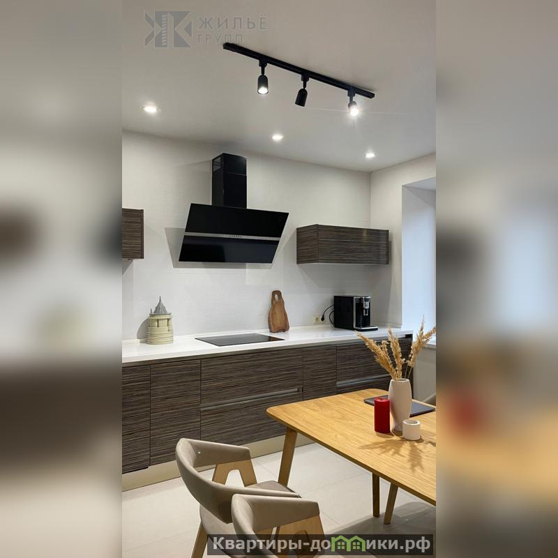 Кухня оснащена столешницей из искусственного камня, гарнитуром Мария от Blum. Есть встроенная посудомоечная машина, индукционная плита и двухкамерный холодильник LG.