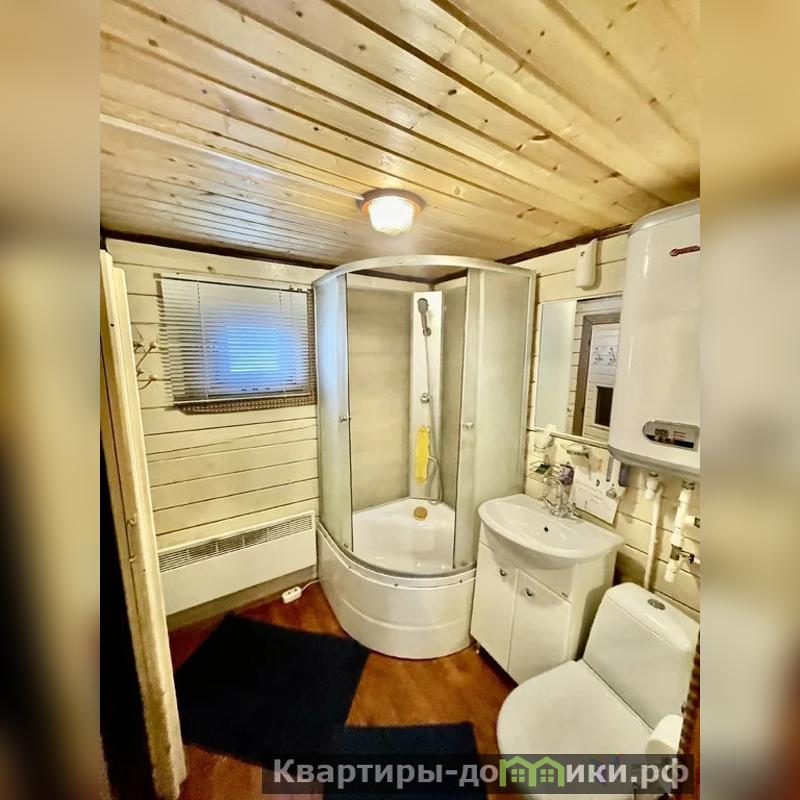 Участок площадью 12 соток ровный и правильной формы. На нем находится гостевой дом (баня) размером 6х6 из бруса, двухэтажный, с двумя комнатами. Коммуникации включают туалет, душевую, бойлер с горячей водой. Гостевой дом подходит для круглогодичного проживания. Также на участке есть беседка, детская площадка, мангал и хозяйственная постройка, вольер.
