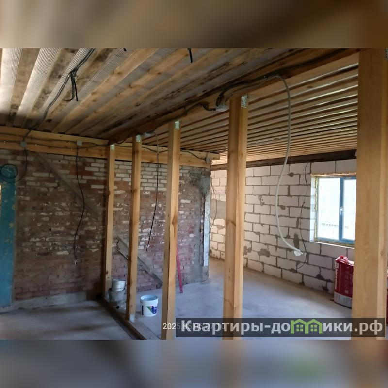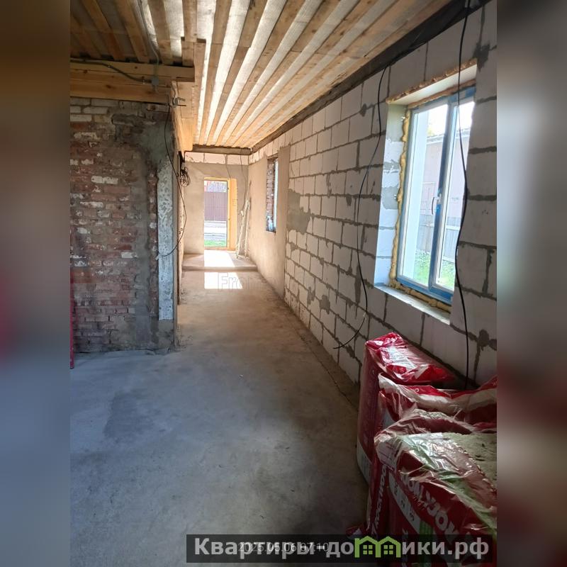 2 дом - одноэтажный, (14 на 8,5 по внутренней стороне стен) кв.м, кирпич+газоблоки, без отделки.