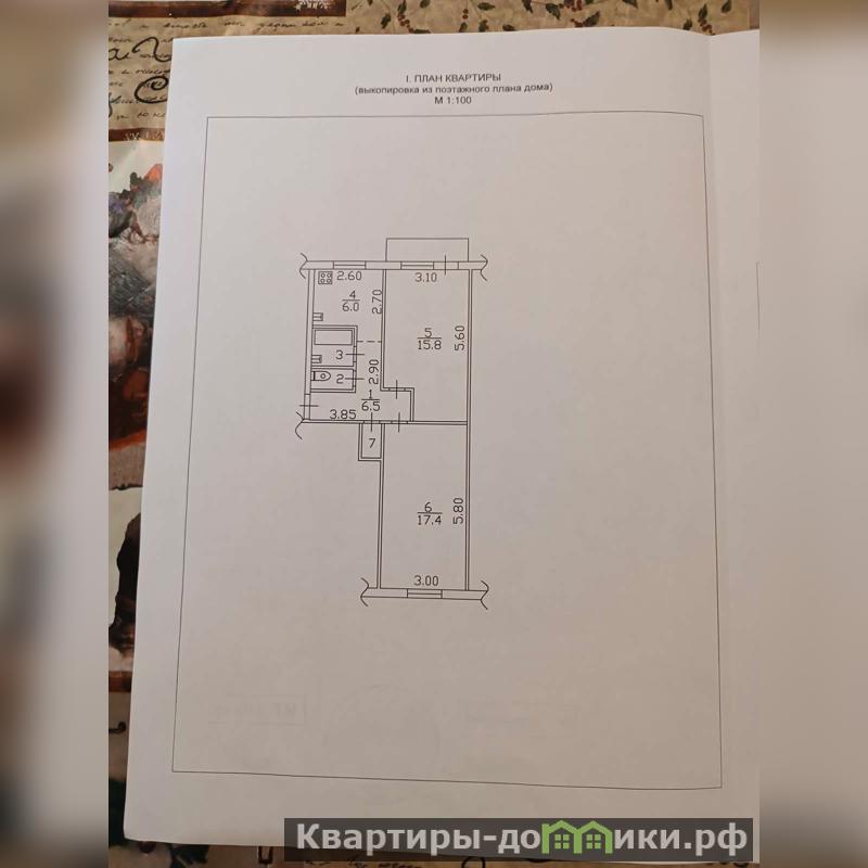 Общая площадь 49,9 кв.м. (без учета балкона), жилая 32,2 кв.м.: комнаты 15,8+17,4 кв.м., кухня - 6 кв.м.