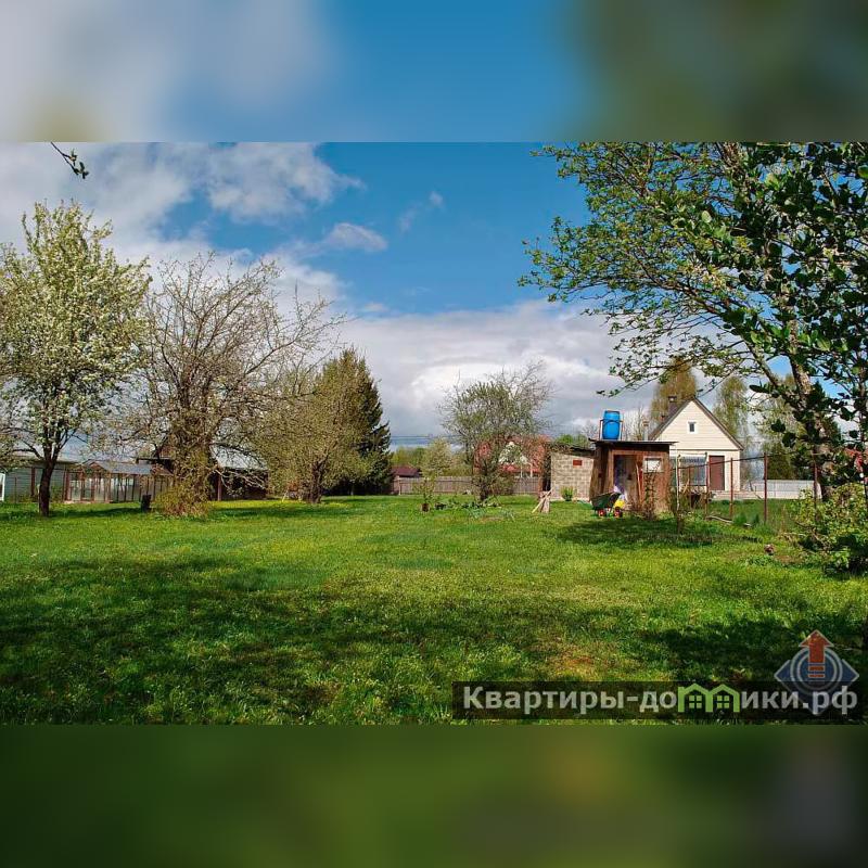 Земельный участок площадью 30 соток, состоящий из двух смежных участков 12 и 18 соток с кадастровыми номерами 50:26:0030801:127 и 50:26:0030801:3. Участок прямоугольной формы (30 x 100 м) расположен на возвышенности с небольшим уклоном к реке, что обеспечивает хороший дренаж и отсутствие застоя воды. Участок возделан, с плодородной землей. На территории газон, плодовый сад (яблони, груши, сливы, смородина) и цветник с пионами. Огорожен сеткой-рабицей со стороны двух застроенных соседей. Установлены ворота и калитки со стороны двух параллельных улиц, обеспечивающих удобный подъезд.