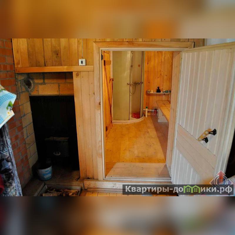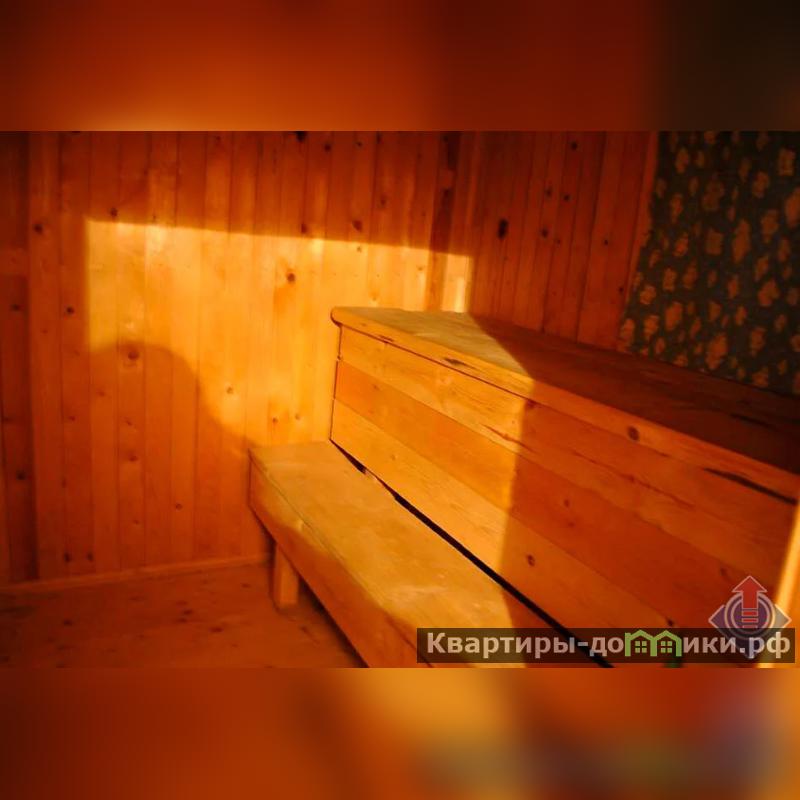 Прекрасная баня из бруса 6 х 4м: чайная комната, душевая, парная, обшитая липовой вагонкой, с металлической банной печью-каменкой. В душевой бойлер, горячее/холодное водоснабжение, вода из собственной скважины Слив использованной воды в рельеф.