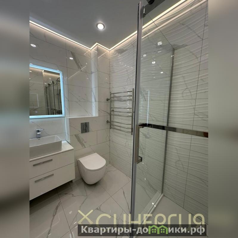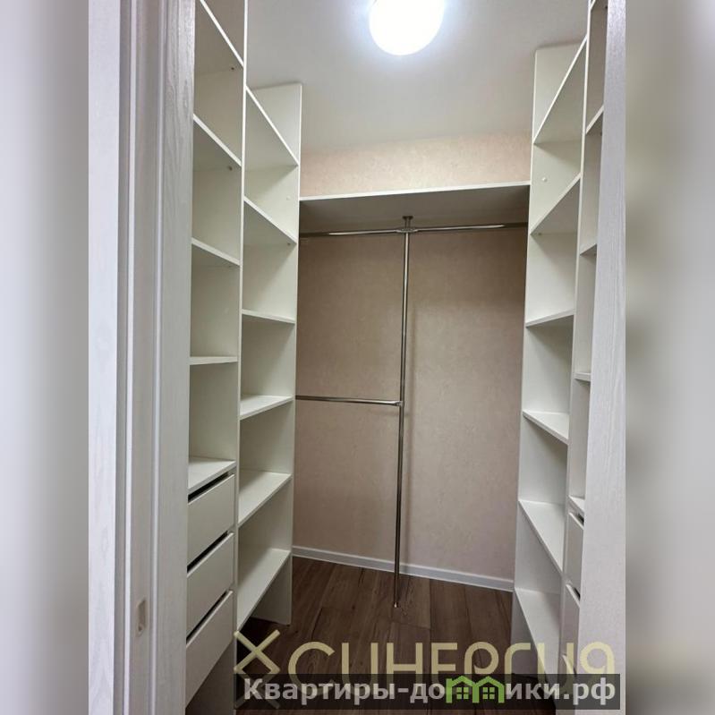 Квартира площадью 73 кв. метра, две изолированные комнаты, одна из них с лоджией и своей гардеробной, кухня-гостиная с лоджией, гардеробная, санузел совмещенный.