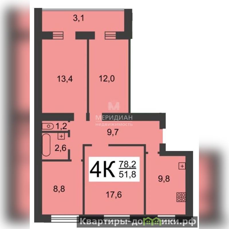 Просторные изолированные комнаты: четыре отдельных помещения с хорошим метражом (13,4+12+17,3+8,8 кв.м. + кухня 9,8 кв.м.) обеспечат каждому жильцу личное пространство и комфорт.