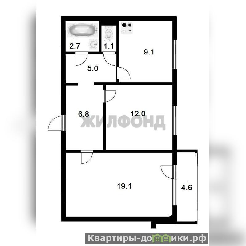 2 комн. квартира по ул. Колхидская. Общей площадью: 55.80 кв.м.