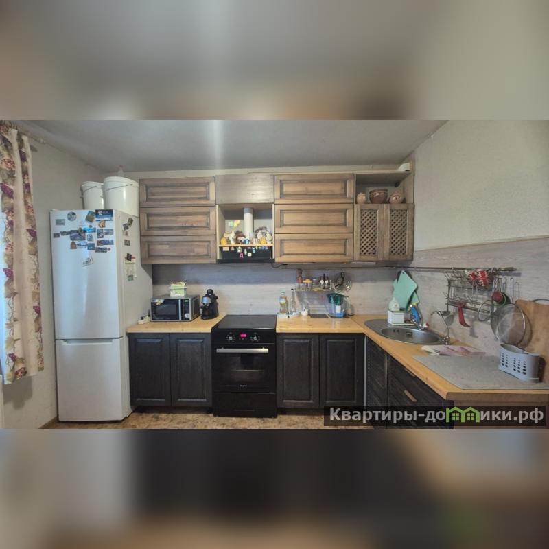 В квартире остается встроенный кухонный гарнитур, сделанный на заказ из массива.