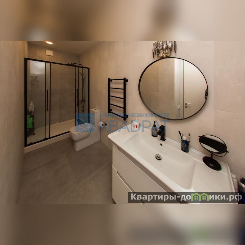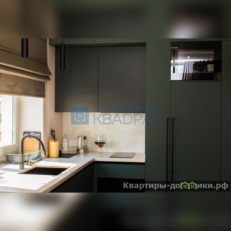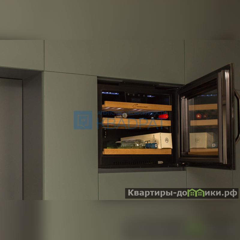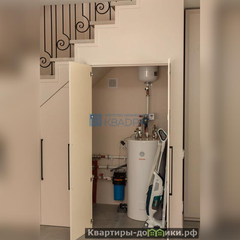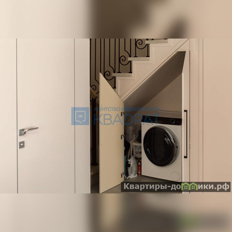 На первом этаже расположена просторная кухня-гостиная 23,8 м2. Остается безумно красивого, глубокого цвета кухонный гарнитур со столешницей из кварца и встроенной мойкой, духовой шкаф Kuppersberg, индукционная варочная панель Haier, встроенный холодильник Haier, посудомоечная машина Haier, ну и вишенка на торте винный холодильник. Также остается вся корпусная мебель, выполненная на заказ и удобный диван. Подлестничное пространство оборудовано под постирочную. Для удобства на первом этаже расположен сан/узел с душевой кабиной.