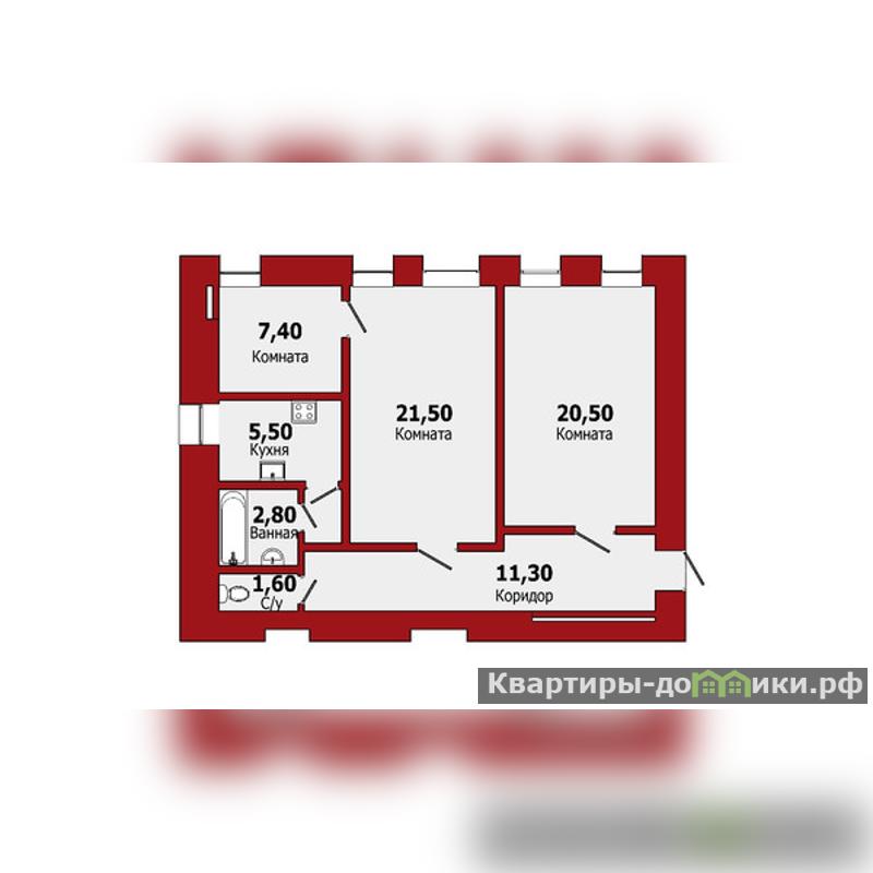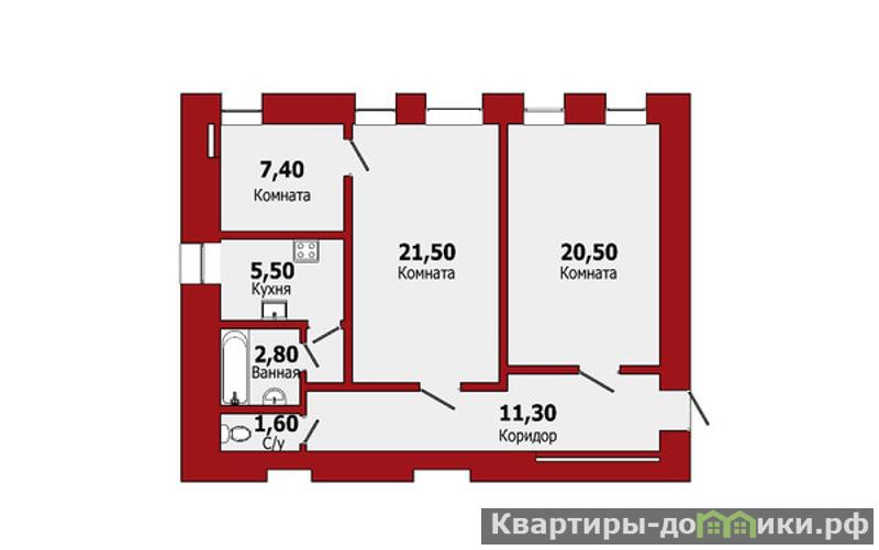 21.5 + 20.5 + 7.4 м2