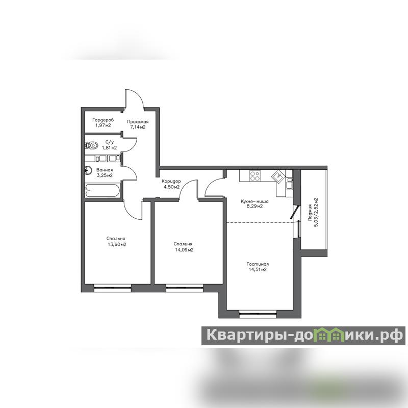 ? B продаже двухкомнатная квартира, S - 72 кв.м.