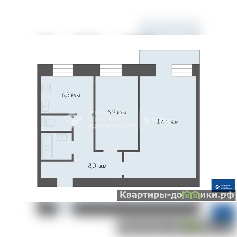 В квартире два изолированных жилых помещения площадью 18,1 и 9,1 кв. м, кухня — 6,3 кв. м, а также балкон и раздельный санузел. Общая площадь квартиры составляет 44,6 кв. м.