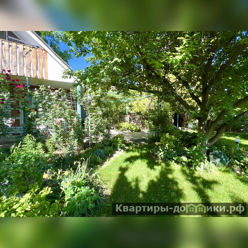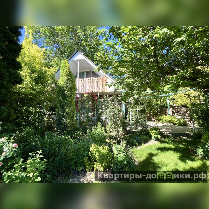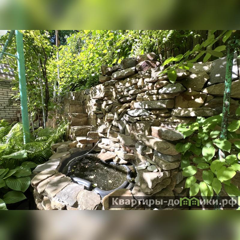 Дом кирпичный, 1990 года постройки. Одноэтажный + мансарда. Фундамент бетон. Фасадная часть участка ограждена забором из профнастила с откатными воротами. Опорная стена участка обложена бутовым камнем. На участке зона барбекю, водопад, небольшой пруд, теплица, хоз. постройка, туалет, баня.