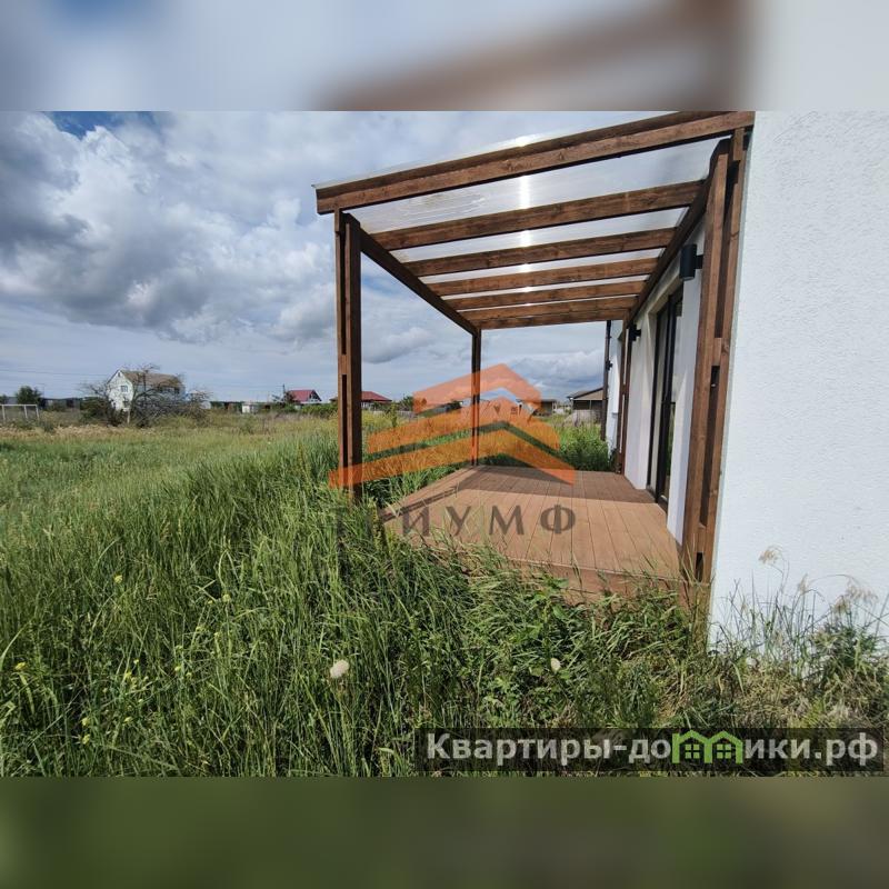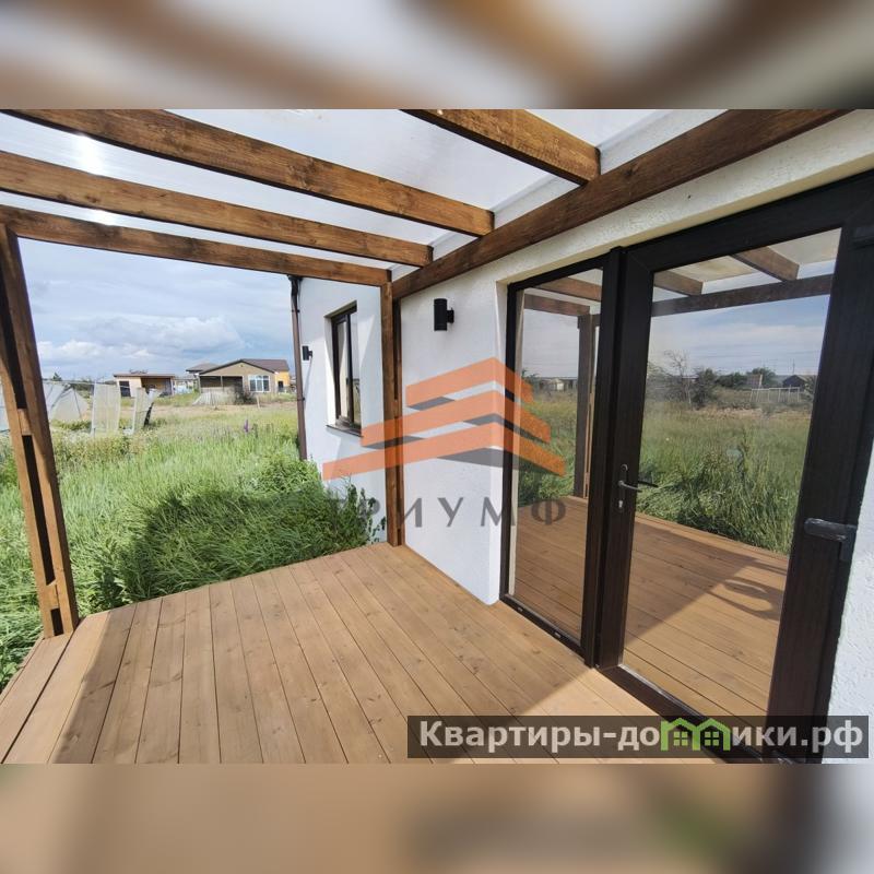 Хорошие стеклопакеты с бронзацией, массивная входная дверь, натяжные потолки, стены оклеены обоями под покраску, наливной пол, сделана полностью разводка электричества, на террасе установлены светильники для комфортного отдыха вечером, фундамент ленточный 50 см, сверху монолитная плита - 40 см, при желании можно сделать второй этаж. Крыша - профнастил, утеплитель-150.