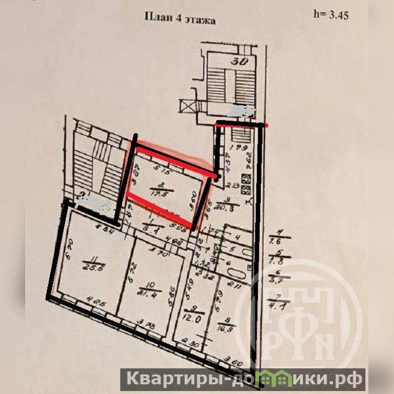 Хороший метраж (17,5), высокие потолки (3.45) и два окна в тихий двор делают комнату особенно привлекательной