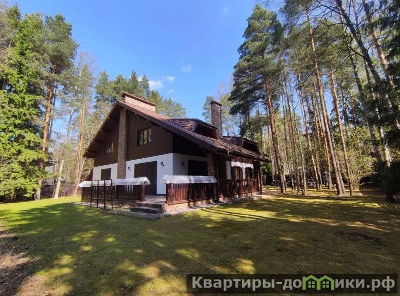 Удивительно гармоничный дом в стиле Шале в идеальном состоянии на лесном участке с вековыми соснами. На участке отдельно расположен гараж на 2 машино- места с квартирой для персонала. Основной дом - Шале, круглогодично отапливается. Внутри разведена электрика , стены готовы под покраску, полы со стяжками, утеплитель на потолках. Крыша из натуральной черепицы. Цоколь сухой, с окнами. Вокруг дома сделана качественная гидроизоляция и дренаж. Идеальная правильная форма участка. В доме две террасы: на втором этаже - в мастер-спальне и на первом этаже - выход из столовой. Отделка натуральным деревом (кедр) с лаком - в идеальном состоянии +штукатурка +камень. Тишина вокруг.
