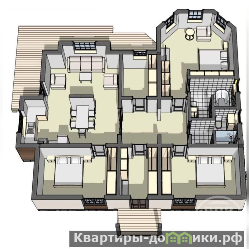 Планировка дома включает в себя: кухню-гостинную, 3 комнаты, раздельный санузел , котельную, гардеробную. Высокие потолки. Проектом предусмотрена терраса и гараж.