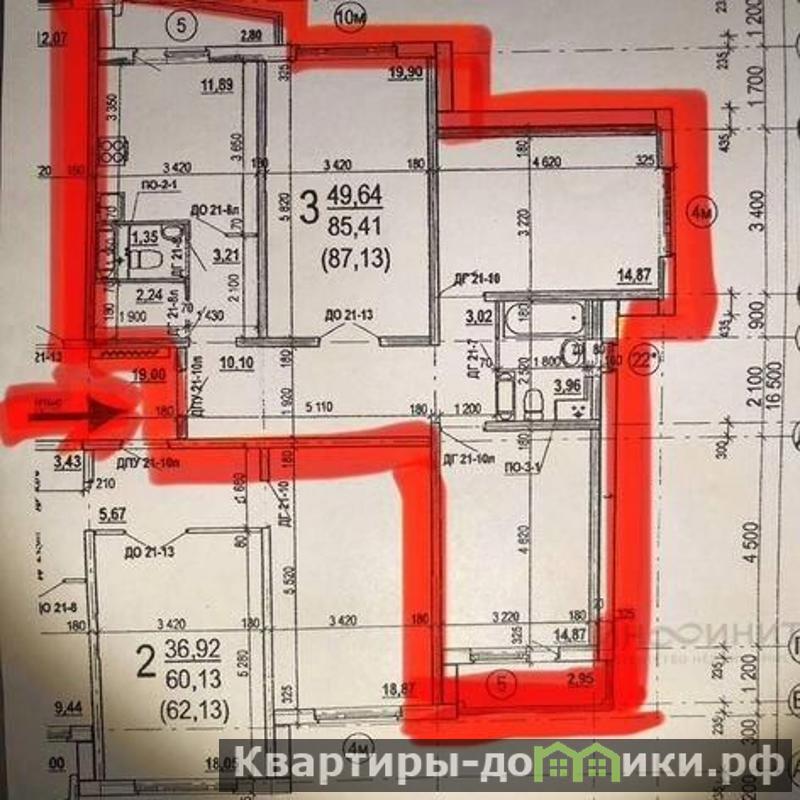 - Просторная планировка - три отдельные комнаты, кухня и санузел.