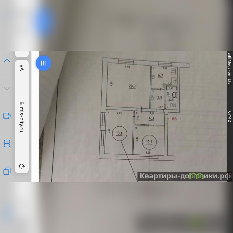 Продаём комнату-21 кв.м, в 3-комнатной квартире, по документам доля, санузел совмещен,