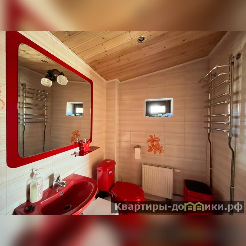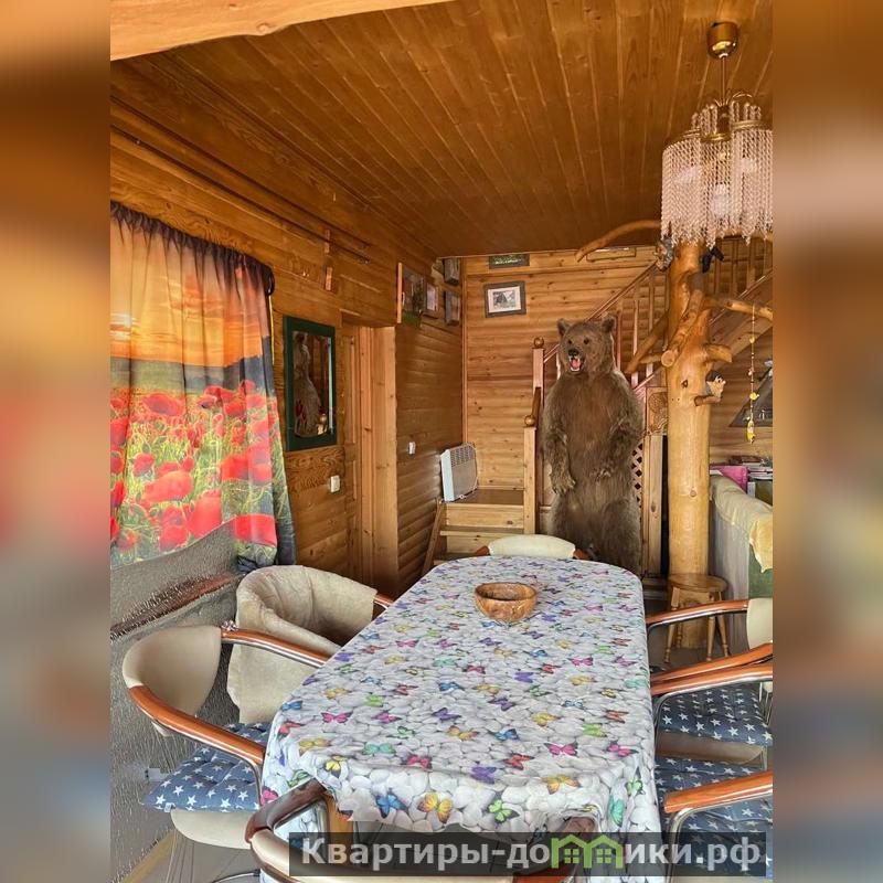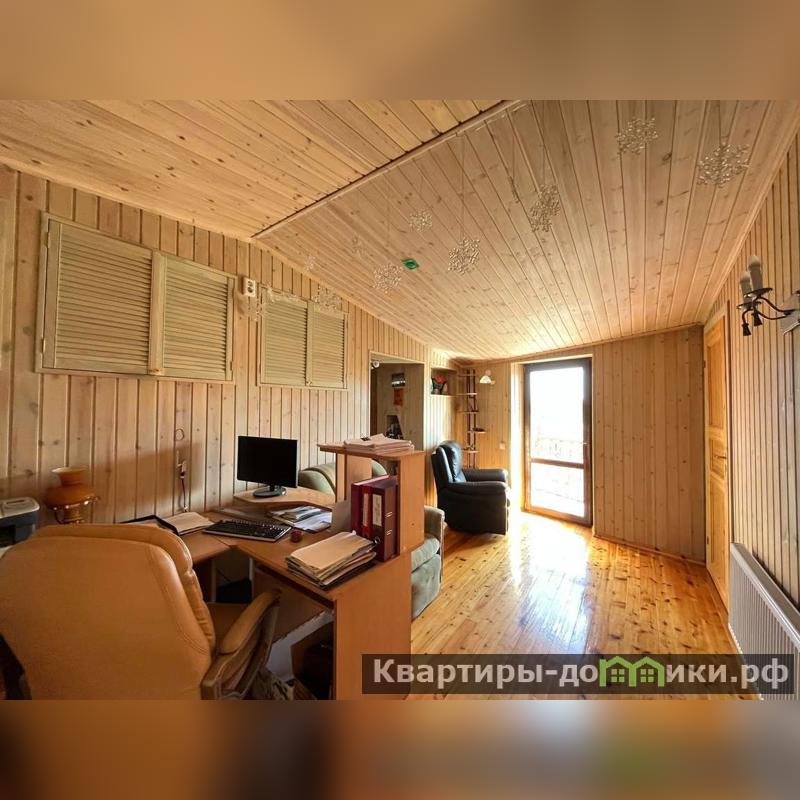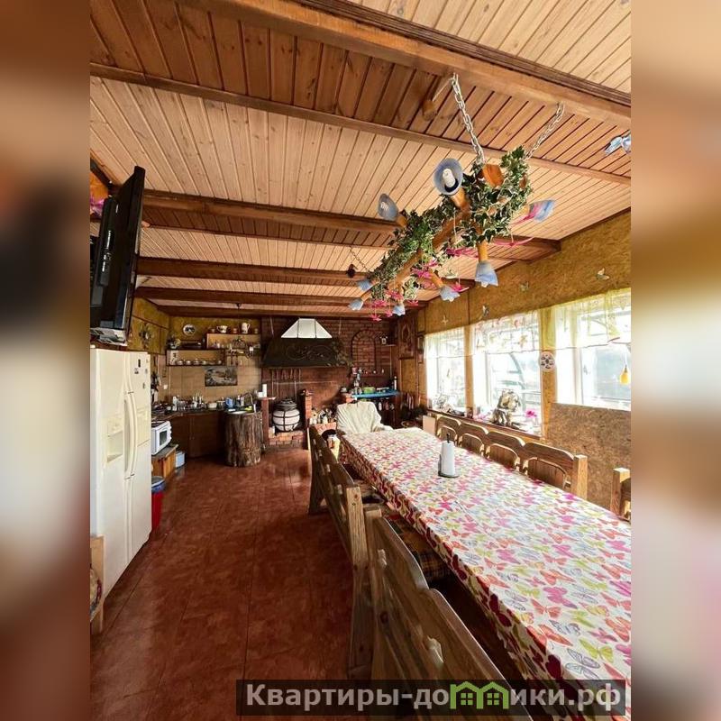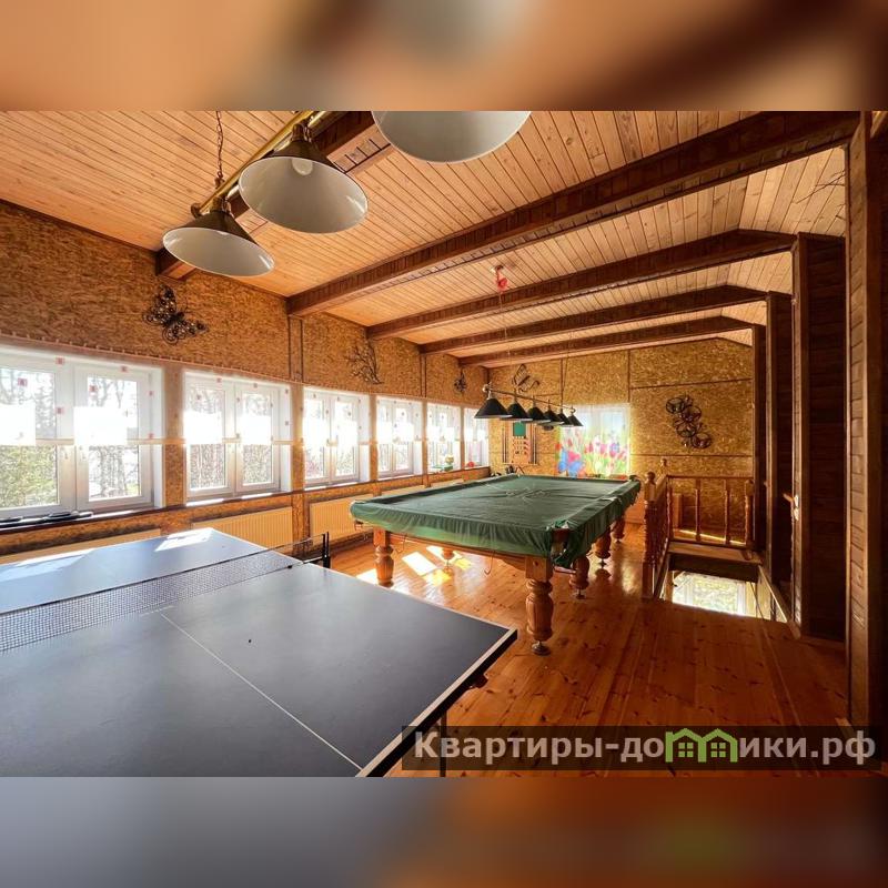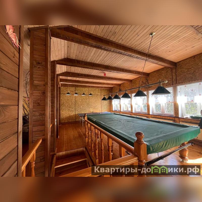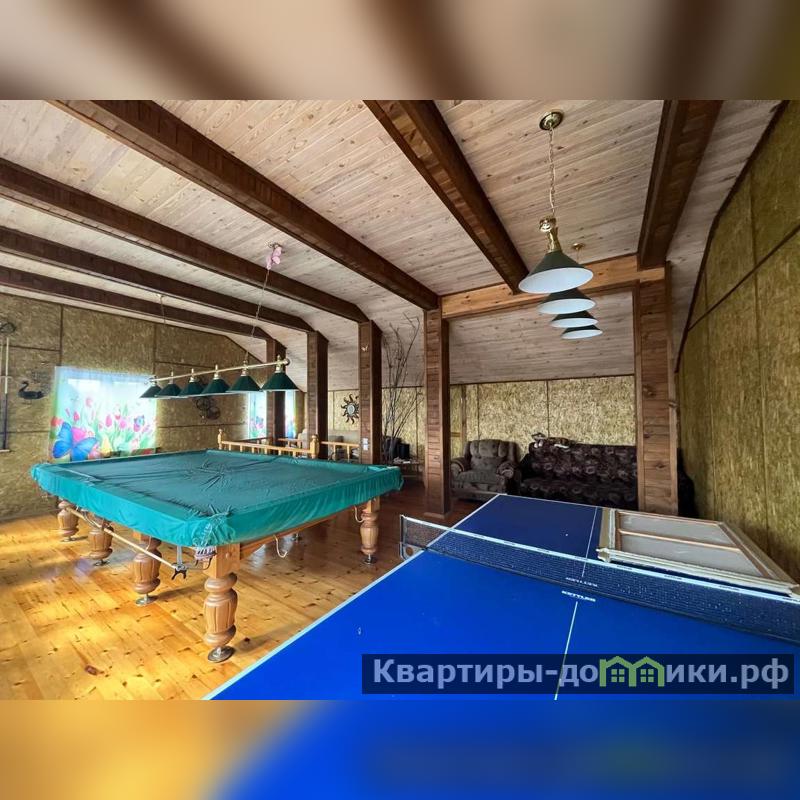 Другой двухэтажный дом на участке построен также на плите, пристройка на ленточном фундаменте. Строение каркасное также с отделкой ролл-хаус и крышей из металлочерепицы. Отваливается электрическими радиаторами, на первом этаже тёплый пол. На первом этаже находятся кухня-столовая с тандыром, санузел, на втором: бильярд и настольный теннис. Есть помещение под кладовую. В пристройке генератор.